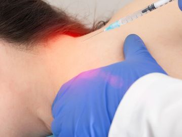 Specific muscle and soft tissue sites are targeted for botox and trigger point injections for delivery of sterile normal saline and anesthetics.